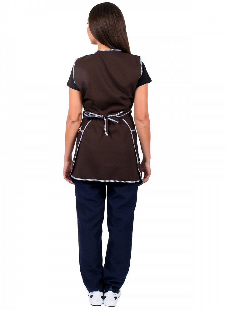 - объем фартука регулируется завязками-поясами, все срезы фартука обработаны кантом из капроновой ткани