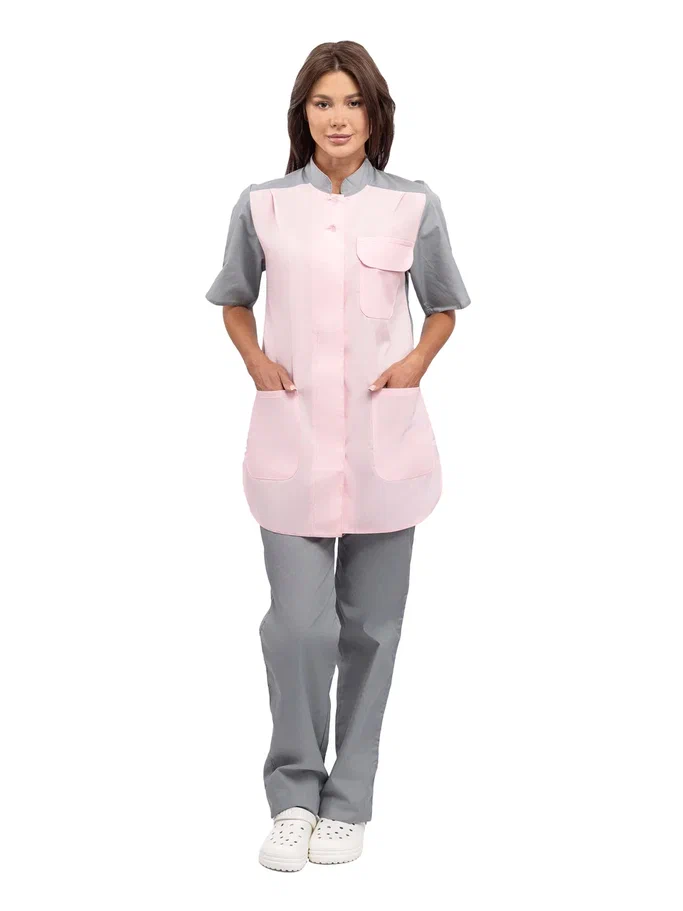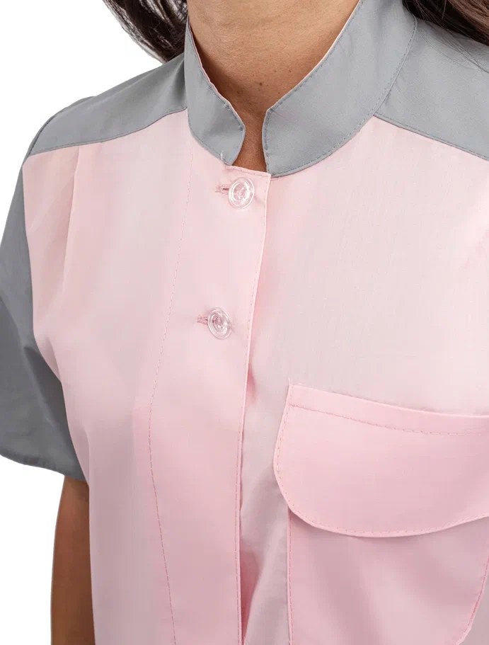Современный удобный женский костюм со свободной посадкой, рекомендован для сферы обслуживания, клининга, гостиничного бизнеса (HORECA) из высококачественной смесовой ткани убережет от загрязнений и послужит отличным помощником в решении задач любой сложности. Костюм для горничных и уборщиц прост в уходе, не мнется и быстро сохнет, а материал долгое время сохранит свой первоначальный яркий цвет. Костюм состоит из блузы серо-розового цвета и брюк серого цвета. Спецодежда для горничных является особенным видом профессиональной униформы. Она создана для сферы обслуживания, работники которой всегда должны выглядеть безупречно. Одежда для горничных строго регламентируется администрацией гостиницы или отеля, поэтому ее состоянию уделяется большое внимание. Костюм состоит из прочной смесовой ткани ТИСИ, отталкивающей различного рода загрязнения. Материал устойчив к пятнам и истиранию, тем самым уборщицы всегда будут выглядеть опрятно и привлекательно.