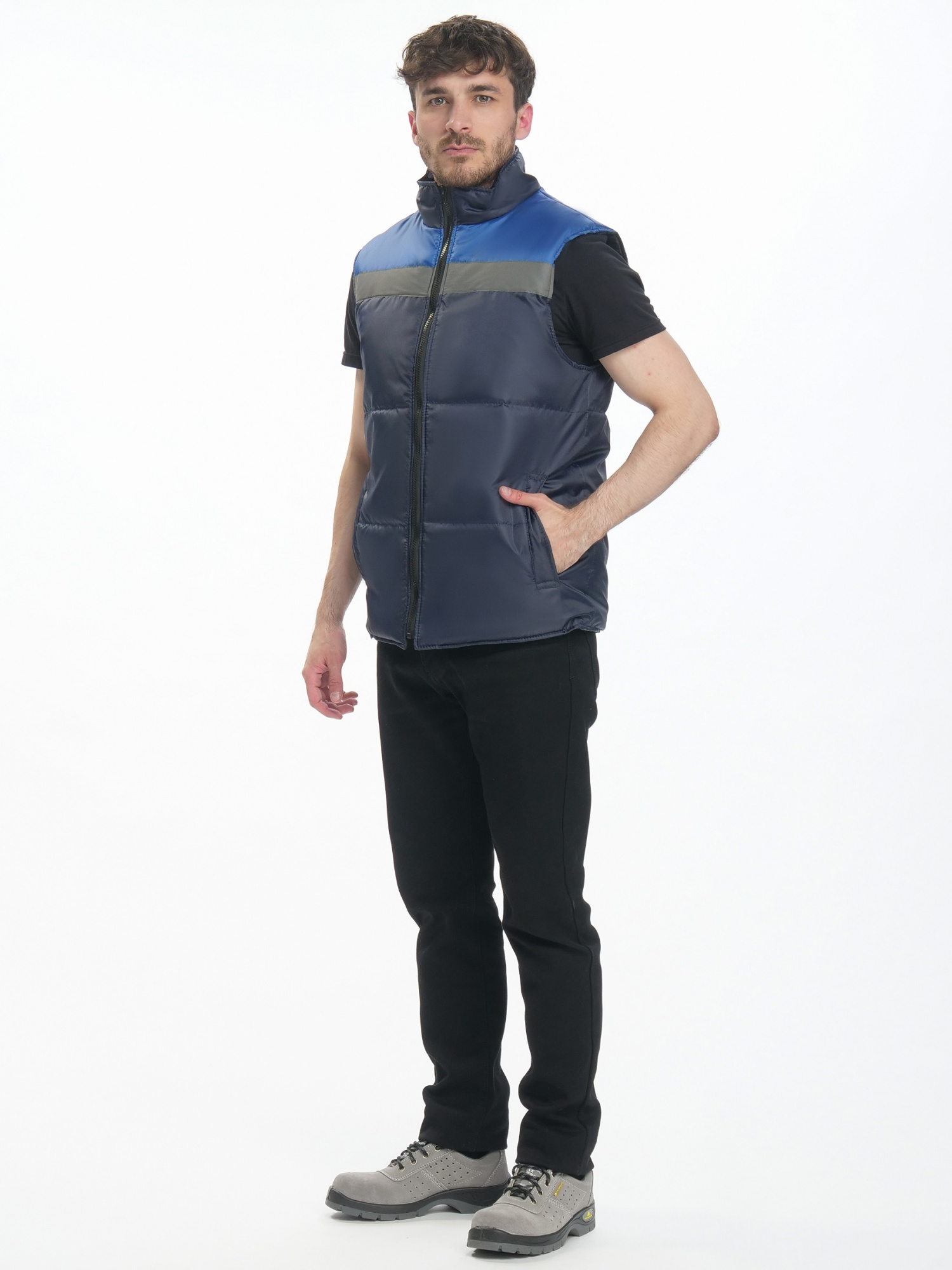 на кокетки настрочена светоотражающая полоса шириной 50мм
